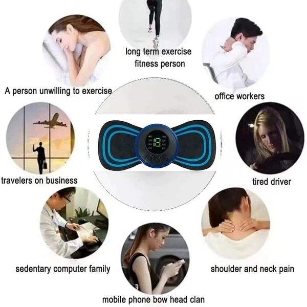 - Apply the self-adhesive device to the desired body area for targeted relief. Relieves muscle pain and discomfort and activates muscle pressure. Boost circulation, ease tension, ease daylong relaxation, loosen muscles, smooth meridians, calm nerves, and instantly revive energy.